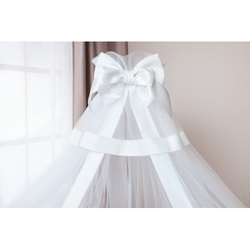 Балдахин из вуали полностью накрывает детскую кроватку, обеспечивая надежную защиту и создавая в спальне волшебную атмосферу уюта.