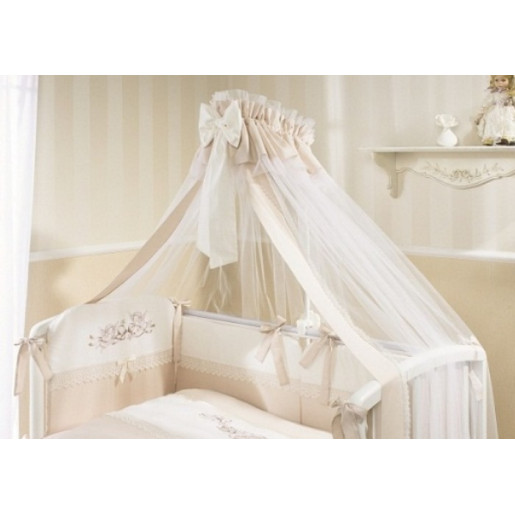 Балдахин из вуали полностью накрывает детскую кроватку, обеспечивая надежную защиту и создавая в спальне волшебную атмосферу уюта.