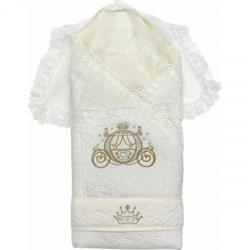 Демисезонный конверт-одеяло на выписку Топотушки Сказка с красивой вышивкой в виде королевской кареты.