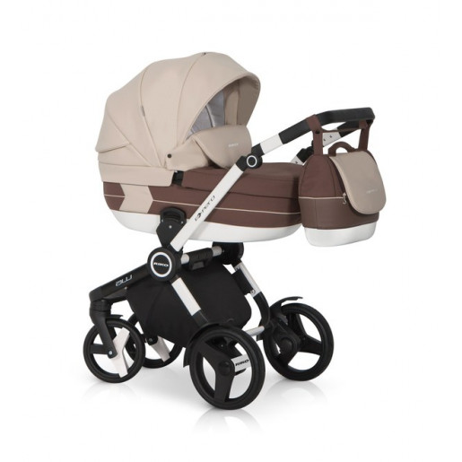 Рико Эксперо получила новую конструкцию рамы, благодаря чему стала легко управляемой и устойчивой на дороге. Пневматические колеса на подшипниках и амортизация позволяют ей плавно катиться по любым дорогам без тряски и грохота. Пара передних колес оснащена функцией «повороты на 360°». Благодаря этому решению детская коляска Riko Expero 2 в 1 радует отличной маневренностью в городской суете.