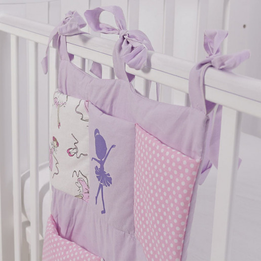 Карман многофункциональный, крепится на ленточках с торца кроватки, по желанию можно закрепить его на любую сторону.