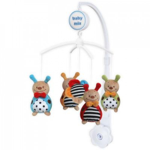 Пластмассовая каруселька с плюшевыми игрушками (божьи коровки). Музыкальная карусель скрасит вашему малышу время проведенное в кроватке, а успокаивающая мелодия поможет ребенку заснуть. Разноцветные игрушки также могут быть использованы отдельно от карусели.