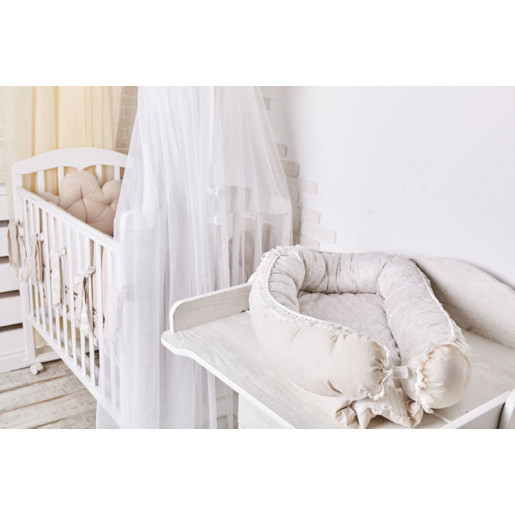 Неповторимый уют подарит кокон-гнездышко, малышу очень комфортно спать в нем, так как стеночки-бортики создают и защищают личное пространство, обозначают границы маленького домика. Выполнен из 100% хлопка, не имеет запаха. Очень мягкий на ощупь, не теряет форму. Допускается деликатная машинная стирка при 30 градусах.