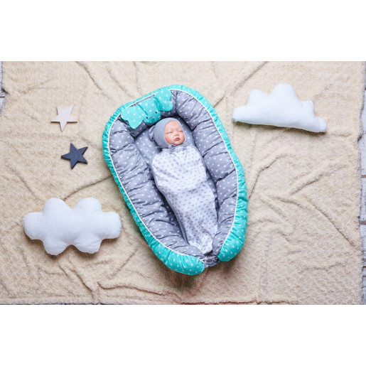 Неповторимый уют подарит кокон-гнездышко, малышу очень комфортно спать в нем, так как стеночки-бортики создают и защищают личное пространство, обозначают границы маленького домика. Выполнен из 100% хлопка, не имеет запаха. Очень мягкий на ощупь, не теряет форму. Допускается деликатная машинная стирка при 30 градусах.