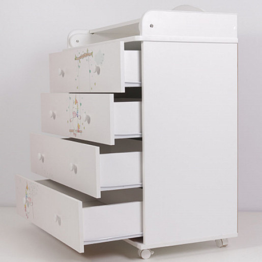 - Когда малыш подрастёт, крышку можно будет снять. Комод имеет четыре вместительных ящика для хранения детских вещей.