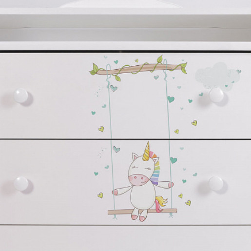 Комод пеленальный "Единороги" ЛДСП белый+принт 800/4