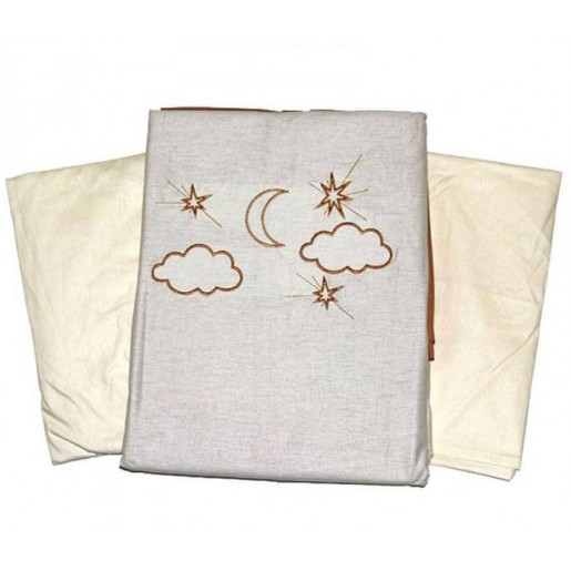 Простой, но очень нужный комплект из трех предметов станет незаменимой частью кроватки малыша. Нежный бежевый оттенок создает атмосферу асболютного спокойствия, что позволит малышу крепко спать и видеть интересные сны.