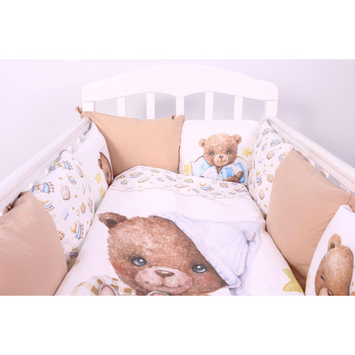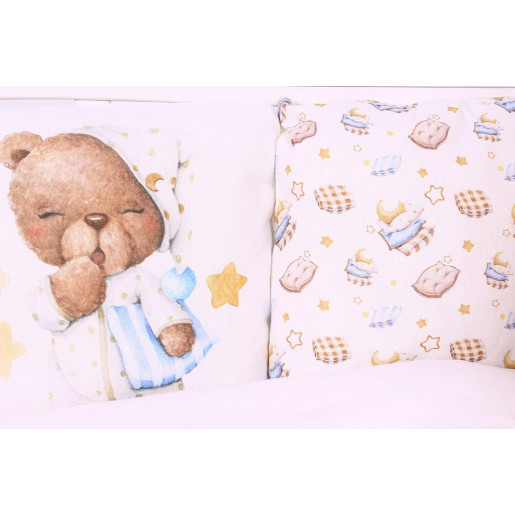 Веселые рисунки-мишки подарят чудесное настроение вашему малышу. Этот комплект способен порадовать даже взрослого, потому что выполнен с абсолютной любовью к нашим маленьким крохам. Ведь им нужен полноценный здоровый сон, для них важно находится в спокойном, уютном и теплом гнездышке. Благодаря этому комплекту ваш малыш будет крепко спать и получать истинное удовольствие.
