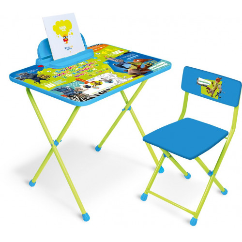 Складной комплект "Зверополис". Комплект складной. Подходит для кормления, игр и обучения. Поверхность столешницы ламинированная с нанесением ярких познавательных рисунков. На поверхности стола можно рисовать маркером на водной основе.Складной стул с мягким сиденьем из легкомоющейся ткани.пенал в подарок.