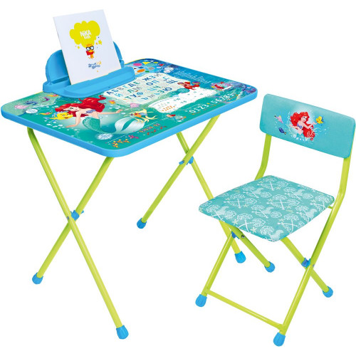 Складной комплект Д4РУ Disney 4 "Русалочка". Комплект складной. Подходит для кормления, игр и обучения. Поверхность столешницы ламинированная с нанесением ярких познавательных рисунков. На поверхности стола можно рисовать маркером на водной основе.Комплект складной. Подходит для кормления, игр и обучения. Поверхность столешницы ламинированная с нанесением ярких познавательных рисунков. На поверхности стола можно рисовать маркером на водной основе.Складной стул с мягким сиденьем. Материал сиденья и спинки стульчика -велюр.Пенал в подарок.