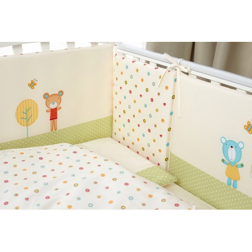 Для дополнительного удобства бампер сделан из отдельных частей со съемным чехлом. Теперь вы легко можете стирать только внешнюю часть бампера, не затрагивая наполнитель. Наполнитель бампера - экологически чистый, гипоаллергенный и легкий материал Hollcon. Этот материал прекрасно сохраняет форму.