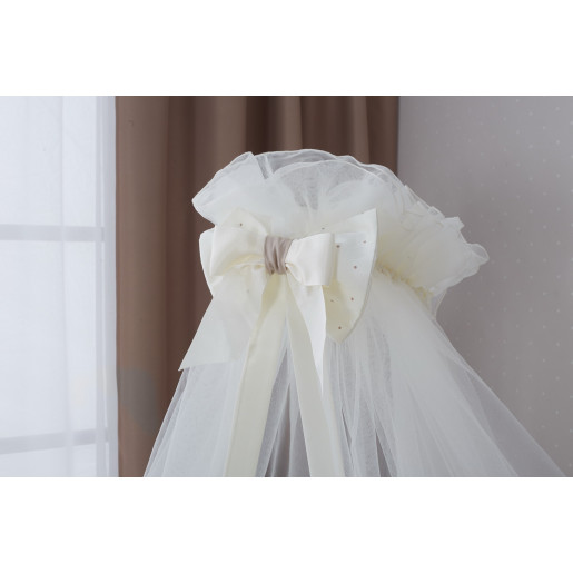 Модель «Le Petit Bebe» - это эксклюзивный комплект, создающий в детской комнате атмосферу волшебной сказки. Перед сном – убаюкает мягким свечением спокойных оттенков. После пробуждения – встретит нежным прикосновением элитного сатина. Воздушные ленты, аппликация из натурального шелка и ниспадающий легкой дымкой балдахин-вуаль завершат изящную композицию.