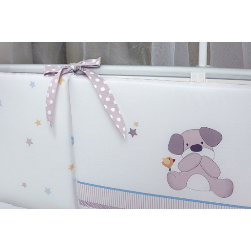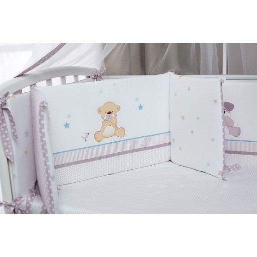 Для дополнительного удобства бампер сделан из отдельных частей со съемным чехлом. Теперь вы легко можете стирать только внешнюю часть бампера, не затрагивая наполнитель. Наполнитель бампера - экологически чистый, гипоаллергенный и легкий материал Hollcon. Этот материал прекрасно сохраняет форму.