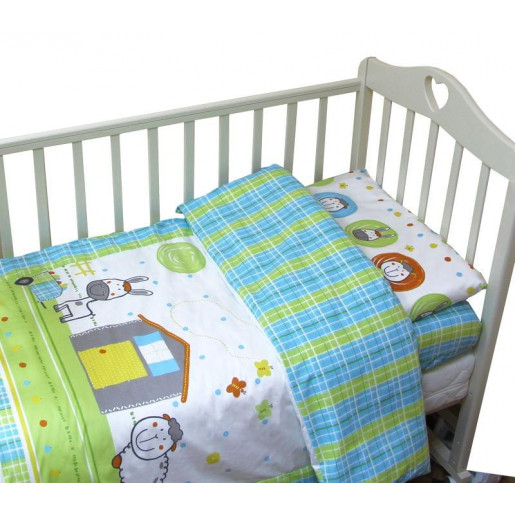 ОписаниеКомплект постельного белья из 3-х предметов для мальчиков и девочек с рождения до 3 лет из нежной бязи. Комплект подходит для прямоугольной и овальной кроватки.