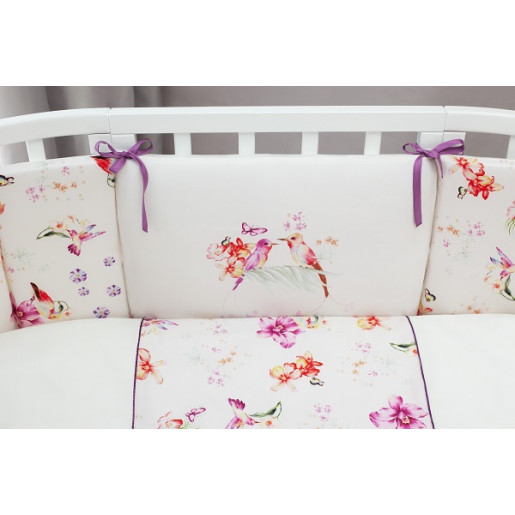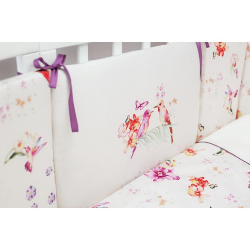 Акварель Oval — это настоящее произведение искусства. Вдохновленный акварельными шедеврами французского Монмартра, этот яркий комплект станет изюминкой вашего интерьера. Созданный вручную узор, изящные рюши и шелковые банты наполнят атмосферу детской спальни легкостью и радостью. Теплые оттенки и южные мотивы согреют малыша в любую погоду, а нежность сатина подарит только приятные сны.