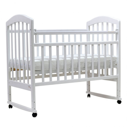 - Четыре колеса легко снимаются, кроватка превращается в качалку.