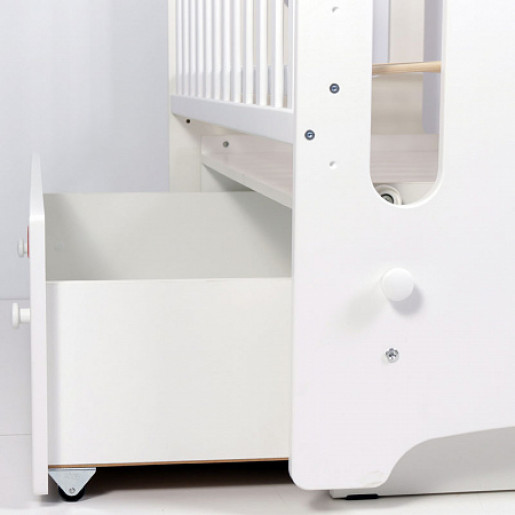 • Закрытый объемный выдвижной ящик для удобства хранения детских вещей, постельных принадлежностей, памперсов или игрушек;