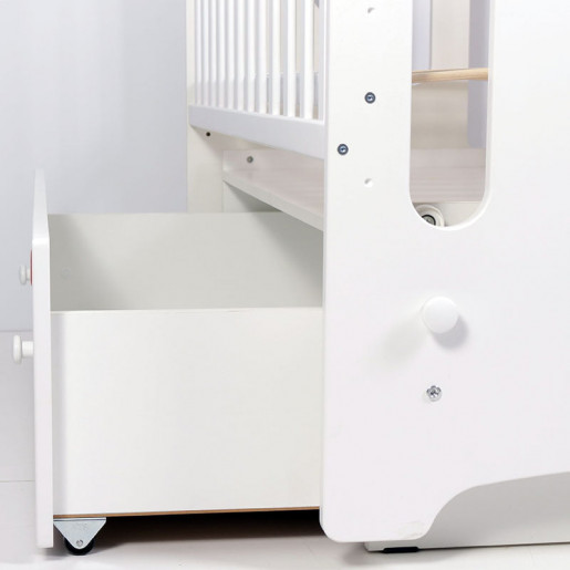 - Закрытый объемный выдвижной ящик для удобства хранения детских вещей, постельных принадлежностей, памперсов или игрушек.