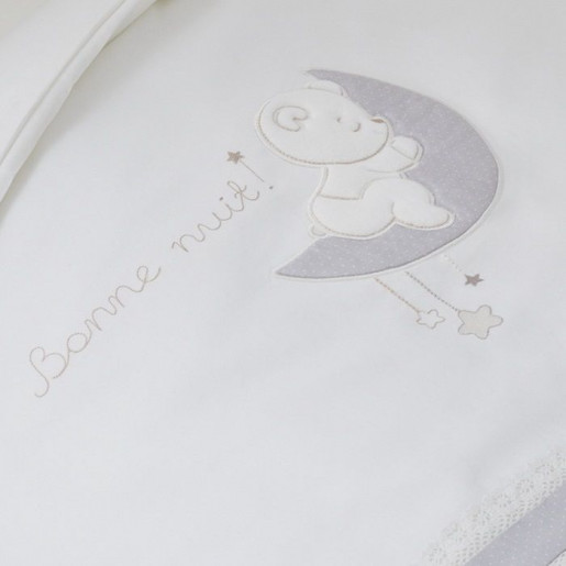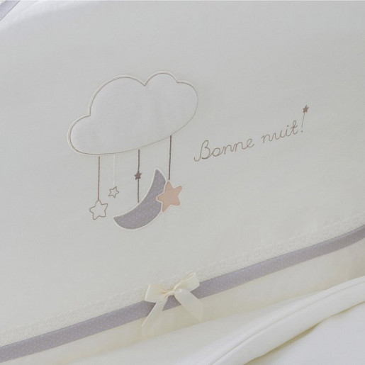 Каждая деталь модели «Bonne Nuit» создана, чтобы подарить вашему малышу приятные сны, окружить его заботой и теплом домашнего уюта. Любое прикосновение к нежному шелковистому сатину обеспечит приятные ощущения, а натуральные велюровые аппликации вызовут настоящий восторг и станут увлекательным открытием после пробуждения.