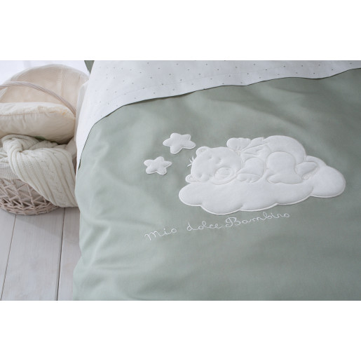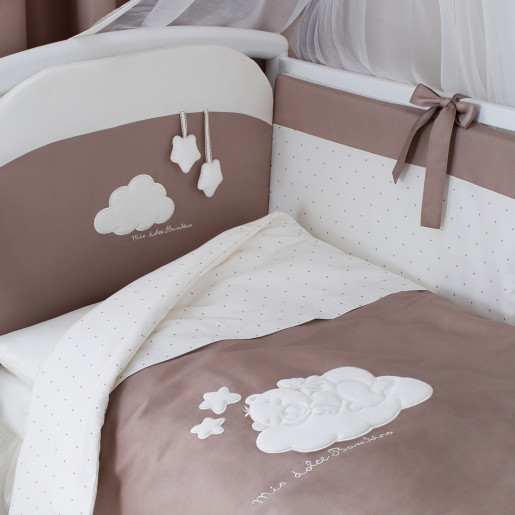 Дизайн модели «Бамбино» окружит вашего малыша теплом семейного уюта. Природные оттенки и спокойные тона элитного сатина убаюкивают перед сном, а стильные и абсолютно натуральные плюшевые игрушки и объемная велюровая аппликация займут маленького первооткрывателя после пробуждения.