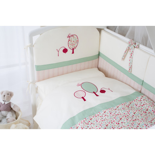 С комплектом «Клюковка» вы окружите своего малыша настоящей сказкой. Мотивы французского Прованса создают ощущение воздушности, а дуэт по-весеннему свежих оттенков в узоре, кажется, наполняет детскую легким ароматом первых цветов. Безупречная вышивка.