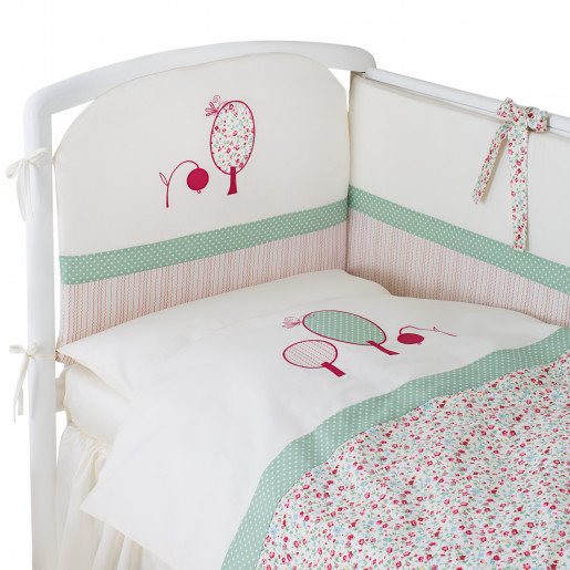 С комплектом «Клюковка» вы окружите своего малыша настоящей сказкой. Мотивы французского Прованса создают ощущение воздушности, а дуэт по-весеннему свежих оттенков в узоре, кажется, наполняет детскую легким ароматом первых цветов. Безупречная вышивка, аккуратные банты и балдахин-вуаль окутают новорожденного нежной дымкой, даря только приятные сны.
