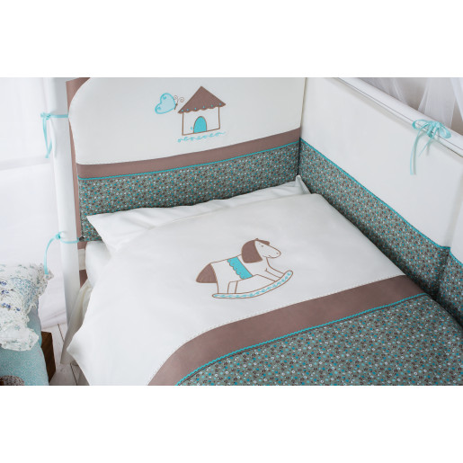 Модель «Жила-была Лошадка» - это эксклюзивный комплект, каждая деталь в котором создана с заботой о вашем малыше. Яркие цвета в узоре соседствуют со спокойными природными оттенками, наполняя особой гармонией и уютом атмосферу в детской спальне. Нежность элитного сатина обеспечит новорожденному приятные сны, а необычные узоры и безупречная фактурная вышивка займут воображение и подарят увлекательные приключения в течение всего дня.