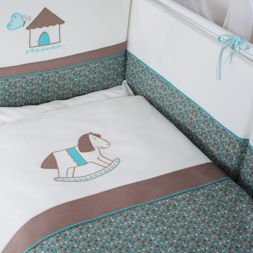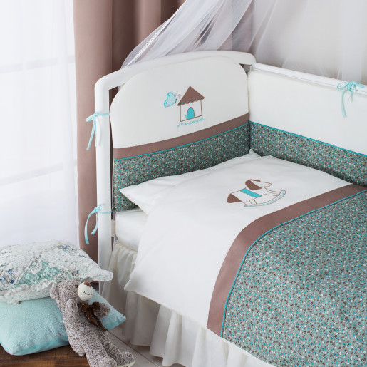 Модель «Жила-была Лошадка» - это эксклюзивный комплект, каждая деталь в котором создана с заботой о вашем малыше. Яркие цвета в узоре соседствуют со спокойными природными оттенками, наполняя особой гармонией и уютом атмосферу в детской спальне. Нежность элитного сатина обеспечит новорожденному приятные сны, а необычные узоры и безупречная фактурная вышивка займут воображение и подарят увлекательные приключения в течение всего дня.